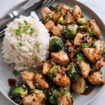 Serve this vibrant dish in colorful bowls or square plates for an appealing presentation. Adding a few sprigs of fresh cilantro or scallions on top adds a pop of color and an herbaceous finish. You could even turn it into a vibrant lettuce wrap, scooping the chicken and Brussels sprouts into crisp butter lettuce leaves for a fun handheld twist.