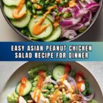 A vibrant and flavorful Asian Peanut Chicken Salad combining shredded chicken, crisp cabbage, colorful vegetables, and a creamy peanut dressing. Perfect for a quick, healthy, and refreshing meal that requires no cooking and makes a great option for meal prep.