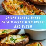 Crispy baked potato skins loaded with melted cheddar cheese, crispy bacon, sour cream, and green onions. A perfect savory appetizer or game day snack with a satisfying combination of textures and flavors.