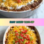 This Baked Taco Dip is an easy and crowd-pleasing appetizer perfect for parties or game days. Layers of seasoned ground beef, creamy cheese mixture, and melty Mexican cheese blend are baked to bubbly perfection and topped with fresh tomatoes, olives, and green onions. Serve it warm with crunchy tortilla chips for a deliciously satisfying snack.