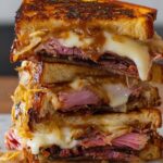 These BBQ Brisket Melts are a delicious way to enjoy tender shredded brisket smothered in barbecue sauce, layered with melted cheddar and mozzarella cheeses, and caramelized onions, all grilled to golden perfection on buttered sandwich rolls or sourdough bread. Perfect for a comforting main course that transforms leftover brisket into a crowd-pleasing sandwich with a smoky, cheesy twist.