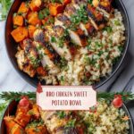 Why not serve these bowls in colorful, rustic pottery bowls to really make the vibrant colors pop? For dinner parties, individual portions garnished with lime wedges and extra cilantro can make a stunning presentation. Or, turn the ingredients into a DIY buffet where everyone builds their own BBQ Chicken & Roasted Sweet Potato Bowls Recipe creation with their favorite toppings and sauces—it’s interactive, fun, and delicious!