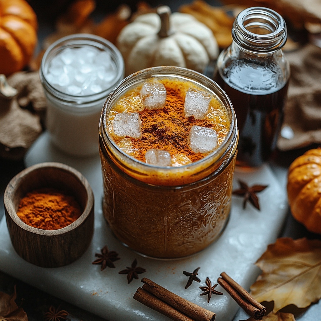 - Assemble and Serve: Pour the pumpkin latte mixture over the ice. For an extra indulgent treat, optionally top with whipped cream and a light sprinkle of cinnamon before serving.
