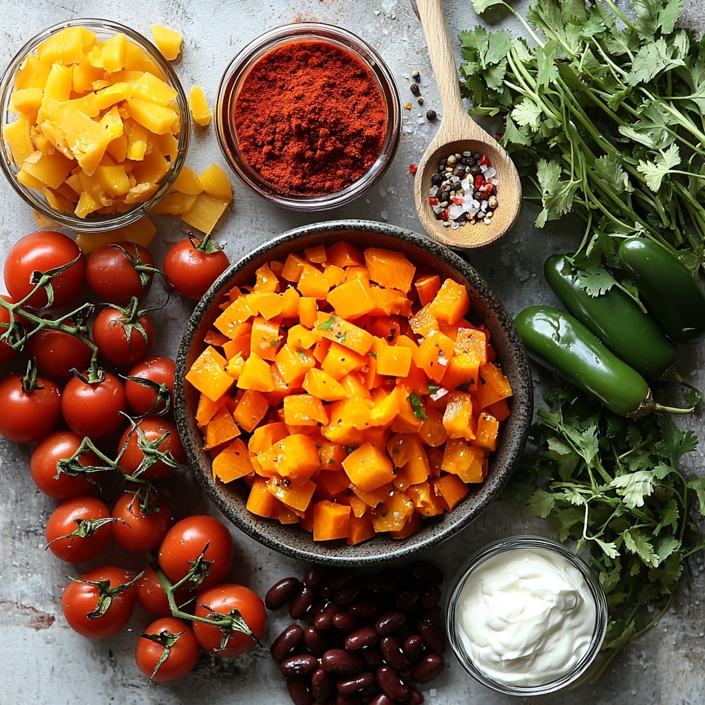 These ingredients might seem straightforward, but together they create a symphony of taste, color, and texture that makes this chili truly special. Each component plays a crucial role, from the spicy jalapenos that add a zing, to the pumpkin that brings creamy sweetness without overpowering the savory elements.