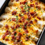This delicious Breakfast Enchiladas recipe combines fluffy scrambled eggs, savory breakfast sausage or bacon, sautéed vegetables, and melted cheese wrapped in warm flour tortillas and baked in a flavorful enchilada sauce. Perfect for a hearty and satisfying morning meal, these enchiladas are easy to prepare, make-ahead friendly, and garnished with fresh cilantro and green onions for a burst of color and freshness.