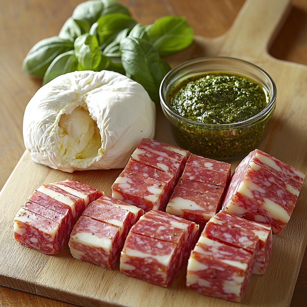- 4 oz high-quality mortadella: Adds a smoky, slightly spiced, and rich meatiness that complements the cheese.