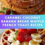 Indulge in a delightful twist on traditional French toast with this Caramelized Coconut Banana Bread Waffle French Toast. Thick banana bread slices are soaked in a rich coconut milk and egg mixture, then cooked to golden perfection in a waffle iron. Topped with toasted shredded coconut and drizzled with luscious caramel sauce, this recipe combines tropical flavors and comforting sweetness for a perfect breakfast or brunch treat.