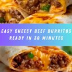 These Cheesy Beef Burritos are a quick and satisfying meal combining seasoned ground beef, fresh vegetables, and melted cheddar cheese wrapped in warm flour tortillas. Perfect for a delicious weeknight dinner, they bring together classic Tex-Mex flavors with an easy cooking process that takes just 30 minutes.