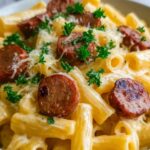 - Combine & Bake: Preheat the oven to 375°F (190°C). Mix the cooked pasta with the cheese sauce and transfer this mixture to a baking dish. Arrange the browned sausage slices on top and optionally sprinkle with additional cheese.