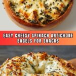 Deliciously creamy and cheesy spinach-artichoke bagels that combine tender spinach, tangy artichokes, and a blend of cheeses on toasted bagel halves. Perfect as a savory snack or appetizer, baked to golden perfection with a bubbly, melty topping.