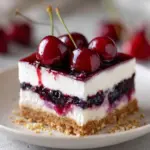 Cherry Delight is a simple, no-bake dessert featuring a buttery graham cracker crust, smooth cream cheese filling, and a luscious cherry topping. Perfect for an easy and refreshing treat that requires minimal preparation and no oven time unless you prefer a firmer crust.