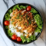 Every ingredient in this dish is simple but essential, working harmoniously to balance flavor, texture, and color. From the protein-packed shredded chicken to the crunchy sprinkle of parmesan and crispy rice, it all comes together effortlessly.