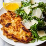 Serve your crispy chicken cutlets immediately with lemon wedges alongside and the peppery arugula salad if you prepared it. This fresh citrus and leafy green combo elevates the dish, making every bite bright and balanced.