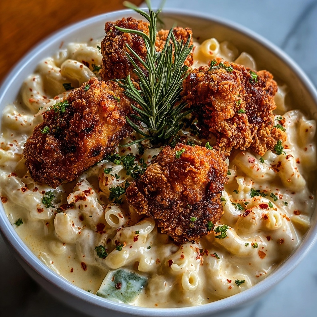 If you’re craving a dish that masterfully balances creamy comfort with a sweet and spicy kick, the Creamy Honey Pepper Chicken Mac and Cheese Delight Recipe is exactly what you need. This bowl of happiness brings together perfectly cooked elbow macaroni smothered in a rich, velvety cheese sauce, topped with crispy, golden-fried chicken bites glazed in a luscious honey pepper sauce. Every forkful delivers a harmony of textures and flavors that feels like a warm hug on a plate, making it an instant favorite for family dinners or gatherings with friends.