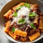 A rich and flavorful Creamy Spicy Italian Rigatoni featuring perfectly cooked rigatoni pasta tossed in a savory sauce made with Italian sausage, crushed tomatoes, heavy cream, and Parmesan cheese, topped with fresh basil for a delicious Italian-inspired meal.