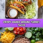 These Crispy Baked Ground Turkey Tacos are a delicious and healthier twist on classic tacos, featuring seasoned ground turkey, refried black beans, and melted cheese baked to a perfect crisp. Served with a refreshing cilantro lime ranch dressing and optional fresh toppings like pico de gallo and guacamole, they’re a crowd-pleasing meal perfect for any taco night.