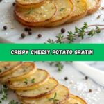 This Crispy Parmesan and Gruyere Potato Gratin is a decadent and comforting side dish featuring thinly sliced Yukon Gold or Russet potatoes baked in a rich creamy sauce flavored with garlic and thyme. Topped with melted Gruyere and Parmesan cheeses and optionally finished with a crispy breadcrumb crust, this gratin delivers a perfect balance of creamy, cheesy, and golden textures, making it ideal for gatherings or holiday meals.
