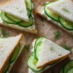 Cucumber Tea Sandwiches feature thinly sliced cucumbers layered with a creamy mixture of cream cheese, mayonnaise, fresh dill, and chives, all sandwiched between soft, crustless bread. These delicate and refreshing finger sandwiches are perfect for tea parties, light appetizers, or elegant gatherings, offering a classic British treat that’s easy to prepare and serve chilled or at room temperature.