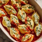 Decadent Spinach-Stuffed Shells is a comforting Italian-American main course featuring jumbo pasta shells filled with a creamy mixture of spinach, ricotta, mozzarella, and Parmesan cheeses. Baked in a rich marinara sauce until bubbly and golden, this vegetarian dish is perfect for a hearty family dinner or special occasion.