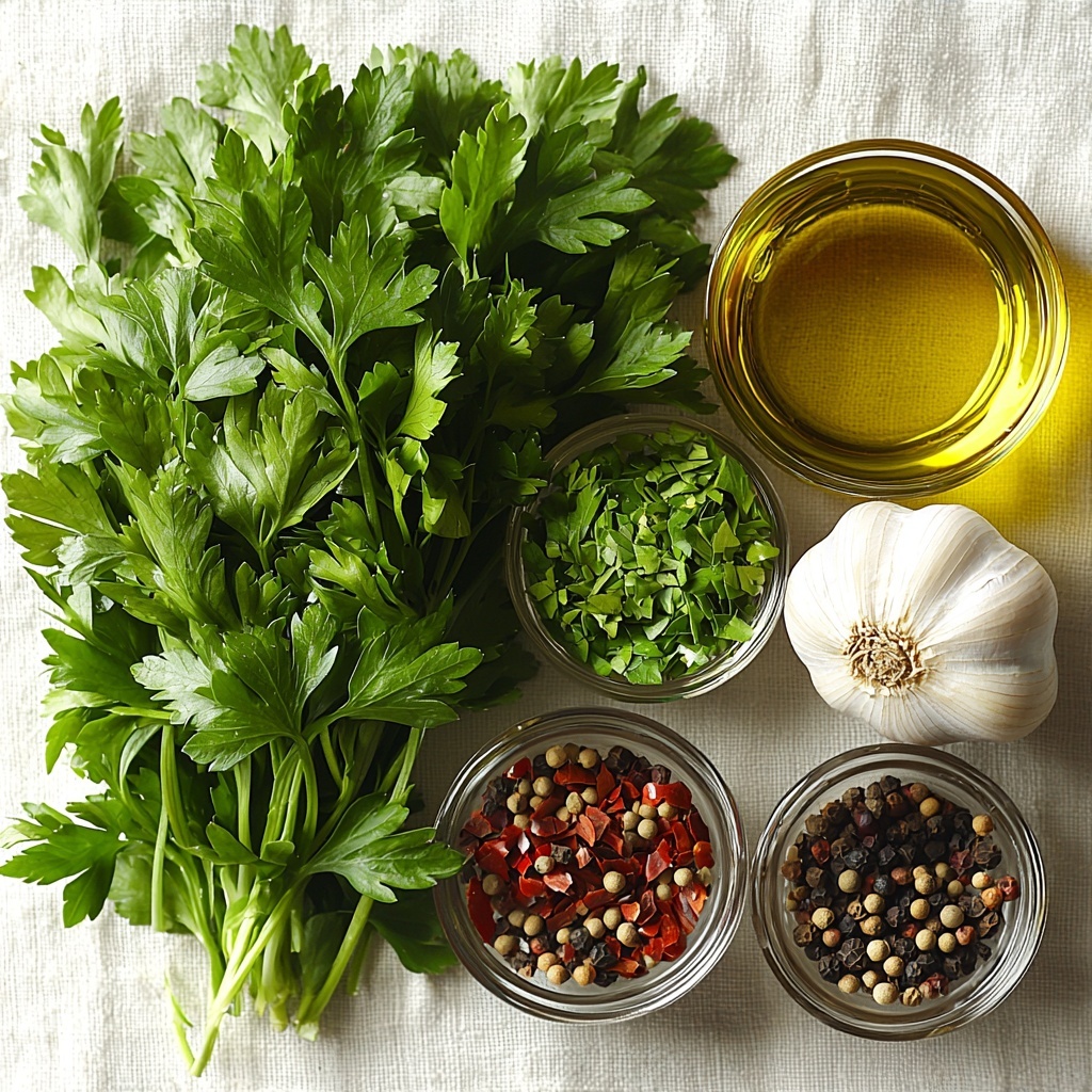 Start by roughly chopping your fresh flat-leaf parsley leaves. This not only makes them easier to blend but also ensures you don’t end up with big herb chunks. Toss the parsley into a small food processor or blender along with the olive oil, red wine vinegar, finely minced garlic, dried oregano, salt, black pepper, and red pepper flakes if you’re using them. This mix of ingredients is the foundation for creating that lively chimichurri flavor profile.