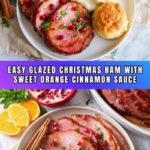 This delicious Christmas Ham recipe features a tender spiral-sliced bone-in ham glazed with a sweet and fragrant mixture of orange juice, brown sugar, honey, and cinnamon. Finished with a vibrant topping of orange zest, pomegranate seeds, and fresh parsley, this festive dish is perfect for holiday gatherings and serves about 18 slices.