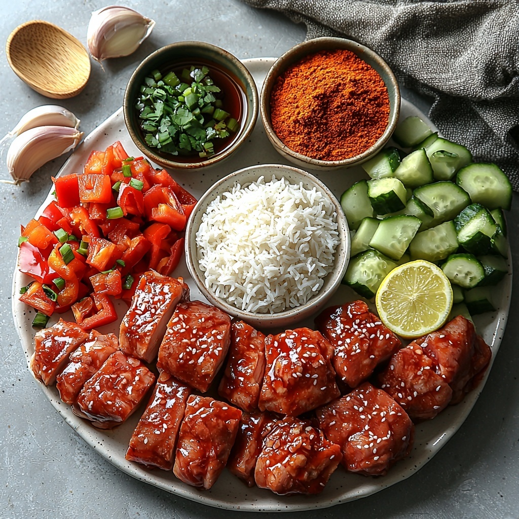 • 1 medium Cucumber (sliced): Adds fresh, crisp contrast to the warm chicken and rice.