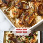 This French Onion Chicken & Rice recipe combines tender, juicy chicken breasts with caramelized onions, garlic, and a flavorful blend of herbs and chicken broth. Baked together with long-grain rice and topped with melted Gruyere or Swiss cheese, this comforting one-pan dish offers a deliciously rich and cheesy twist on classic French onion flavors, perfect for an easy weeknight dinner.