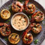 This Grilled Garlic Jumbo Shrimp recipe features succulent, marinated jumbo shrimp grilled to perfection with a fragrant garlic and smoked paprika marinade. Served with a tangy lemon-Dijon dipping sauce and charred citrus halves, it is a quick, flavorful, and elegant seafood dish perfect for summer BBQs or easy weeknight dinners.