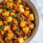 This hearty Ground Beef and Potatoes recipe is the ultimate comfort food classic, combining tender browned beef with perfectly cooked potatoes in one skillet. Flavored with aromatic onions, garlic, paprika, and thyme, and enriched with beef broth and Worcestershire sauce, this dish is a warm, satisfying meal perfect for weeknights. Optionally topped with melted cheddar cheese and fresh parsley garnish, it’s simple yet incredibly delicious.