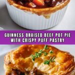 This Guinness Braised Beef Pot Pie is a hearty, comforting dish featuring tender beef chuck slow-braised in rich Guinness stout and aromatic herbs, then topped with a flaky golden puff pastry crust. Perfect for a cozy meal, this Irish-American classic combines deep, meaty flavors with a crisp pastry finish, making it a satisfying main course for any occasion.
