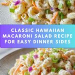 A classic Hawaiian Macaroni Salad featuring tender macaroni pasta coated in a creamy, tangy dressing made with mayonnaise, apple cider vinegar, and milk, combined with crisp celery, grated carrot, and fresh onions. Perfect as a side dish for barbecues, potlucks, or any casual gathering.