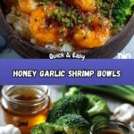 This Honey Garlic Shrimp Bowls recipe features succulent shrimp coated in a sweet and savory honey garlic sauce served over a bed of fluffy white rice or quinoa, accompanied by vibrant steamed or sautéed broccoli and fresh green onions. It’s a quick and easy meal perfect for busy weeknights that delivers delicious flavors and a balanced plate.