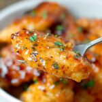 Reheat gently on the stovetop over low heat or in the microwave, adding a splash of chicken broth if needed to loosen the sauce. Avoid overheating to keep the chicken juicy and tender.