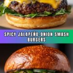 This Jalapeño-Onion Smash Burgers recipe delivers juicy, crispy-edged beef patties topped with melted cheddar cheese and a flavorful sautéed jalapeño and onion mixture. Toasted brioche buns are spread with a tangy mayo-ketchup-mustard sauce and layered with fresh lettuce and pickles for the perfect spicy, smoky burger experience made on the stovetop using a cast-iron skillet or griddle.