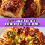 This Jalapeño Popper Crescent Roll Ring is a delicious and easy-to-make appetizer combining creamy, cheesy jalapeño popper filling wrapped in flaky crescent roll dough. Perfect for parties and gatherings, this ring features cream cheese, cheddar, crispy bacon, and spicy jalapeños baked to golden perfection.
