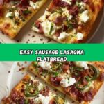 This Lasagna Flatbread recipe combines the classic flavors of a traditional lasagna into a quick and easy flatbread meal. Layers of ricotta, mozzarella, and Parmesan cheese mixed with Italian seasoning are spread over flatbreads, topped with a savory sausage marinara sauce, and baked until golden, bubbly, and delicious. Perfect for a family dinner or casual gathering, this dish offers the comforting taste of lasagna in a convenient flatbread form.