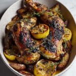 This Lemon Herb Roasted Spatchcock Chicken is a flavorful and juicy poultry dish featuring a whole chicken marinated in fresh lemon juice, zest, garlic, and a blend of herbs. The spatchcock method ensures even cooking and a crispy skin, while roasting at high heat locks in the bright, savory flavors. Perfect for a wholesome family dinner, this recipe delivers tender meat with a zesty, aromatic finish.