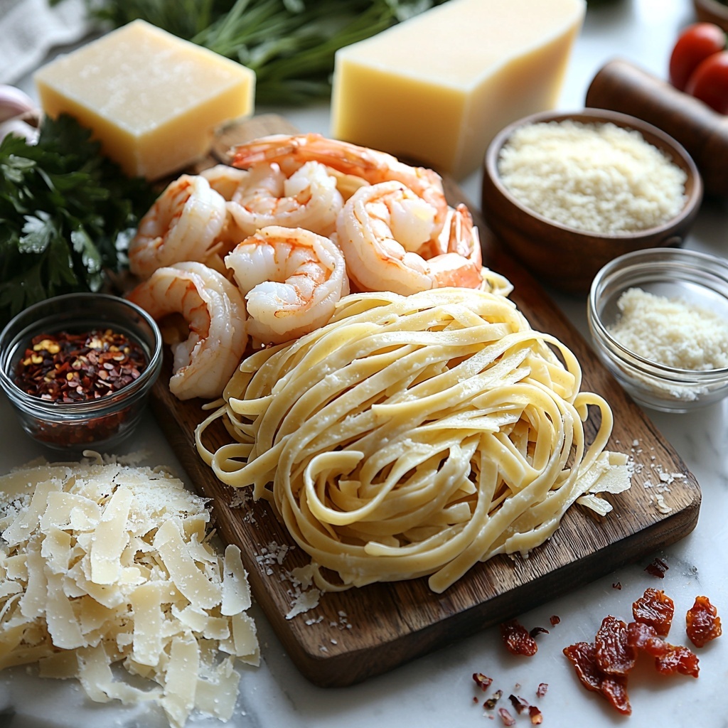 Getting the right ingredients is the first step to nailing this dish. Each one plays a crucial role: the shrimp delivers a fresh, succulent texture, while the sun-dried tomatoes add bursts of tangy sweetness, and the bacon crumbles bring a savory crunch that takes the whole pasta to another level. The creamy sauce pulls everything together with rich, decadent flavor that’s impossible to resist.