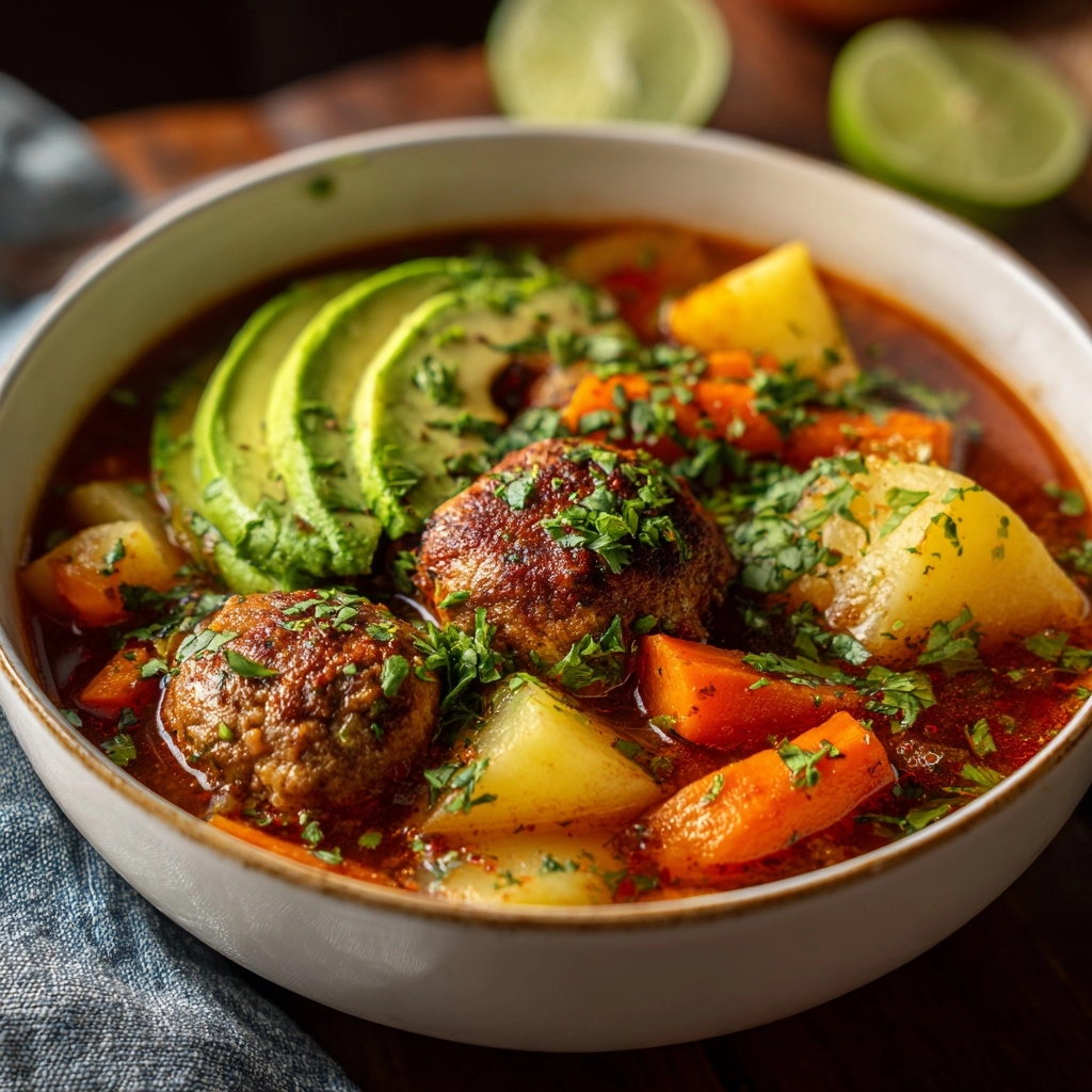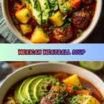 A comforting and flavorful Mexican Meatball Soup featuring tender beef meatballs simmered in a savory tomato and vegetable broth, accented with fresh cilantro and lime for a zesty finish.