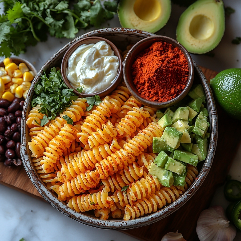 This Mexican Street Corn Pasta is a vibrant and flavorful twist on the classic elote, combining tender rotini pasta with charred corn, creamy mayo and sour cream dressing, zesty lime, and a kick of chili powder. Black beans and avocado add heartiness and creaminess, while cotija cheese and fresh cilantro offer authentic Mexican flair. Perfect as a refreshing, crowd-pleasing side or light main dish, this recipe is easy to prepare and served chilled for a delightful summer meal.