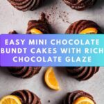 Drizzle the rich chocolate glaze over the cooled mini bundt cakes using a spoon or a piping bag for elegance. If you like, decorate with candied orange slices or other fun toppings to add color and a citrusy contrast.