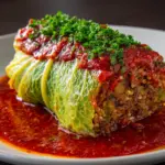 This classic Old-Fashioned Stuffed Cabbage Rolls recipe features tender cabbage leaves filled with a savory mixture of ground beef, pork, rice, and spices, baked in a rich tomato sauce. A hearty and comforting Eastern European dish that’s perfect for family dinners or holiday meals.