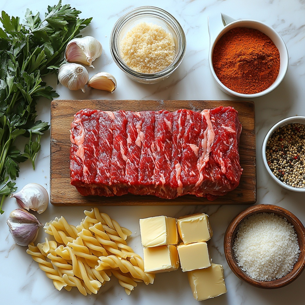 The simplicity of these ingredients is what makes this dish so approachable yet packed with flavor. Each element plays a vital role—from the savory depth of the steak and broth to the creamy touch of butter and cheese, not to mention the subtle heat from crushed red pepper flakes. Here’s what you’ll gather before you start cooking: