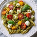 This vibrant Pesto Pasta Salad is a delicious, refreshing dish perfect for a light lunch or a side at your next gathering. Featuring a medley of al dente pasta, fresh cherry tomatoes, spinach, mozzarella balls, olives, and chickpeas, all tossed in a flavorful basil pesto dressing with a hint of tangy apple cider vinegar. Ready in under an hour and easy to prepare, it’s a crowd-pleaser that’s both satisfying and wholesome.