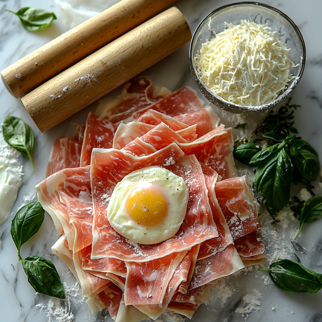 - Layer Prosciutto: Spread the thinly sliced prosciutto evenly over the rolled-out pastry to cover the surface and deliver savory flavor in every bite.