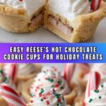 These Reese’s Hot Chocolate Cookie Cups are a festive and delicious treat perfect for the holiday season. Made with sugar cookie dough baked into mini muffin tins and filled with Reese’s mini cups, they feature candy cane handles and a white chocolate and frosting finish, making them a perfect gift or cozy snack.