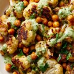 This Roasted Cauliflower and Chickpeas with Herby Tahini recipe features perfectly roasted cauliflower steaks and crispy chickpeas seasoned with warm spices, paired with a creamy, herb-rich tahini sauce. It’s a flavorful and satisfying vegetarian dish ideal for a healthy weeknight meal or a vibrant side dish.