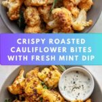 - Serve: Once the cauliflower bites are roasted, transfer them to a serving plate. Sprinkle extra fresh mint over the bites for garnish if desired. Serve immediately with the chilled mint dip for dipping.