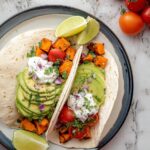 - Assemble the tacos: Once the sweet potatoes are tender and caramelized, load them into the warm tortillas. Top with a dollop of Greek yogurt, tomatoes, red onion, chopped cilantro, sliced avocado, and a squeeze of lime juice to brighten the flavors.