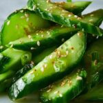 Before serving, finish off your Smacked Cucumber Recipe with a sprinkle of toasted sesame seeds and, if you like, a scattering of fresh cilantro or green onions to add a pop of color and freshness.